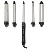 A five-in-one wand curling kit that features interchangeable titanium barrels to achieve crease-free, easy, natural-looking curls and waves.